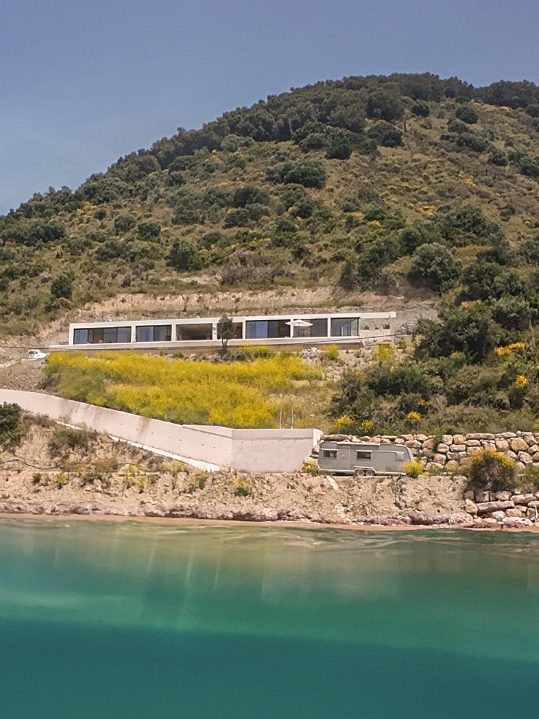 Dem wie ein Schiff anmutenden Entwurf haben wir den Namen Arche gegeben, was auch sein Alleinstellungs- merkmal in dieser Landschaft widerspiegeln sollte. Das Gebäude fügt sich ideal in die Landschaft ein und hat in der Bucht einen besonders traumhaften Standort direkt am Strand.